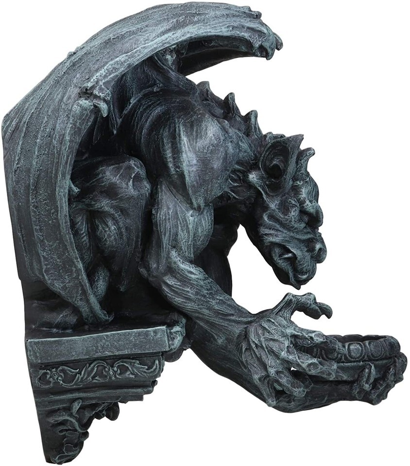 ? This Gargoyle Candle Holder Wall Sconce Sculpture is made of designer composite resin, hand painted and polished. Candles in picture not included