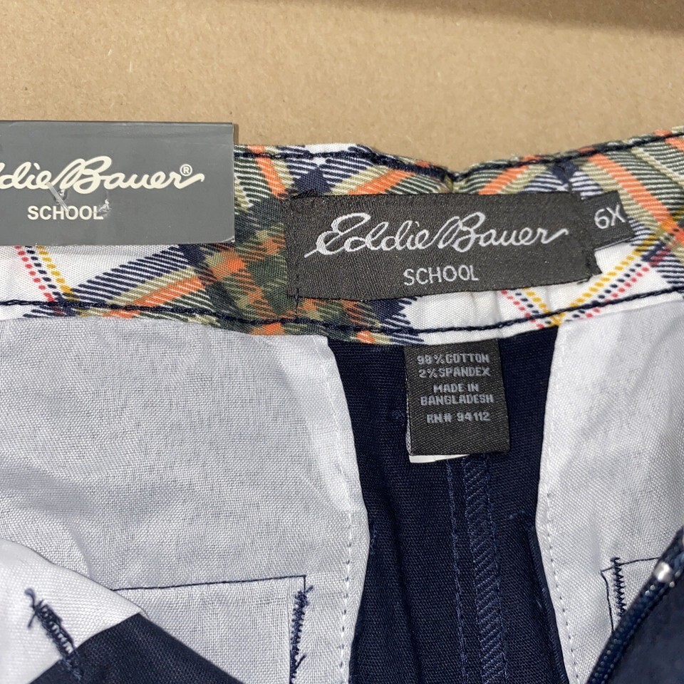 Eddie Bauer School Boys Pants Size 6z Blue Flat front Stretch NWT.