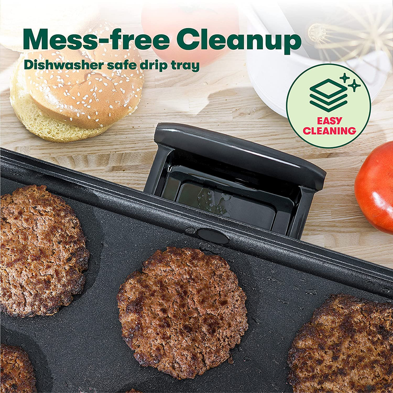 CONVENIENT: With an adjustable temperature dial and removable probe, this stove top griddle has everything you need for precision control. The drip tray collects fat and juices for healthier cooking, while the warming tray keeps food warm until serving