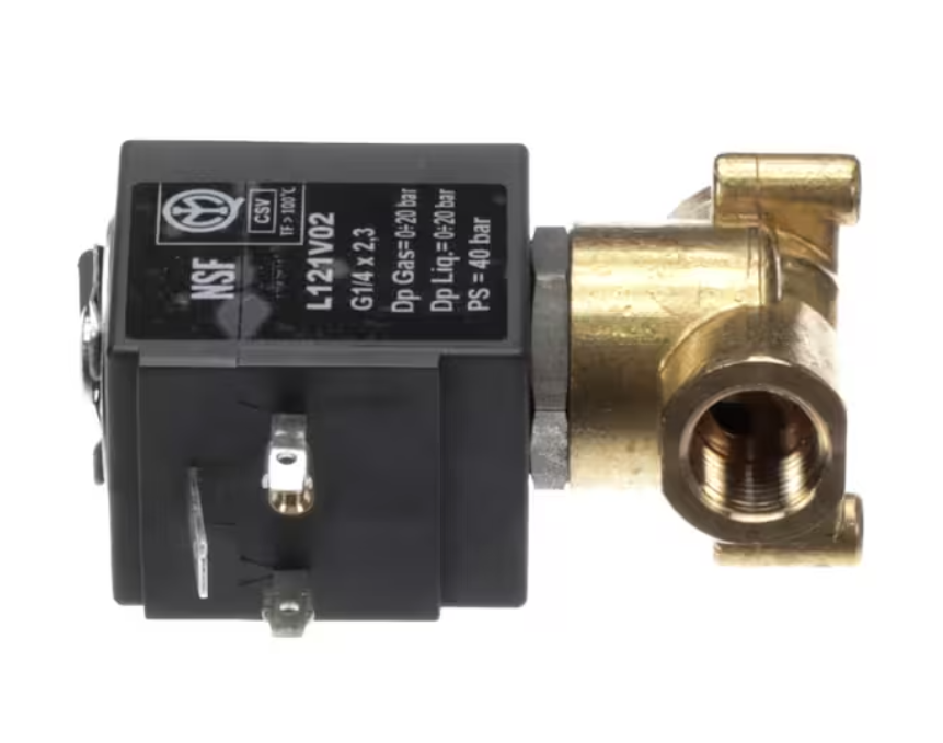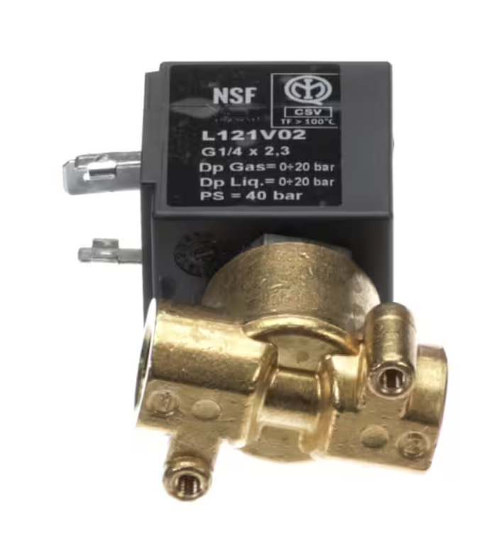 Electrolux Professional L121V02, Solenoid Valve, 230V, 50/60HZ, 1/4" ? a genuine OEM solenoid valve engineered for precise fluid control in Electrolux Professional cooking and boiling equipment. Designed for reliable operation under high-temperature and pressure conditions, this valve ensures accurate flow regulation and consistent system performance.