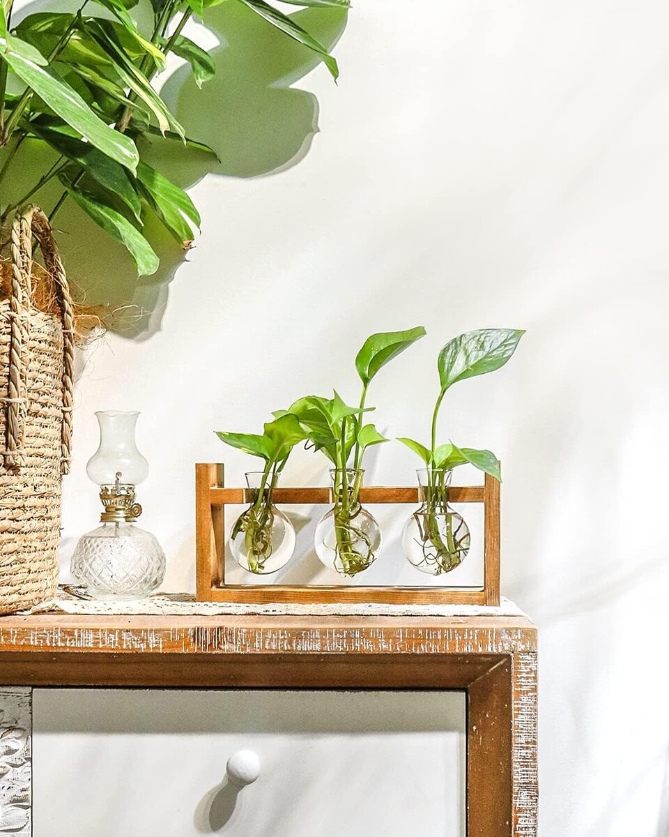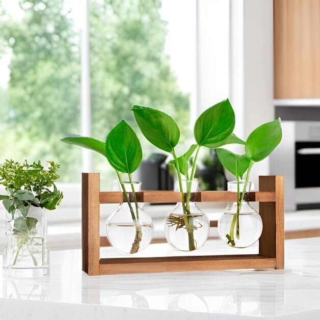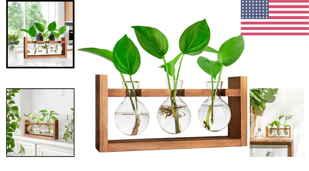 Functional Decoration: Each bulb-shaped glass container is strategically suspended within the frame, allowing visibility of the plant roots and growth condition. Ideal for various plant cuttings including Pothos, Wandering Jew, Spider Plant, Philodendron, and Ivy.