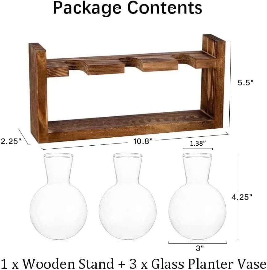 Package Includes: 1 wooden stand and 3 bulb terrariums. Note: Plants not included, allowing you to personalize with your favorites.