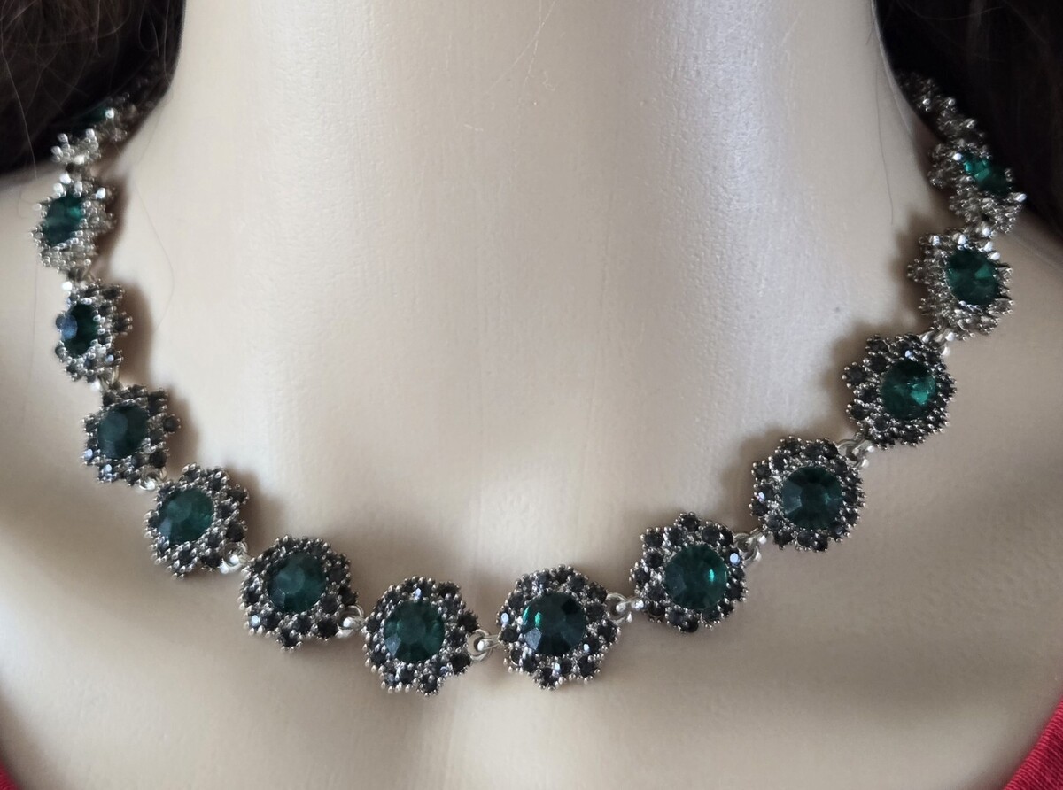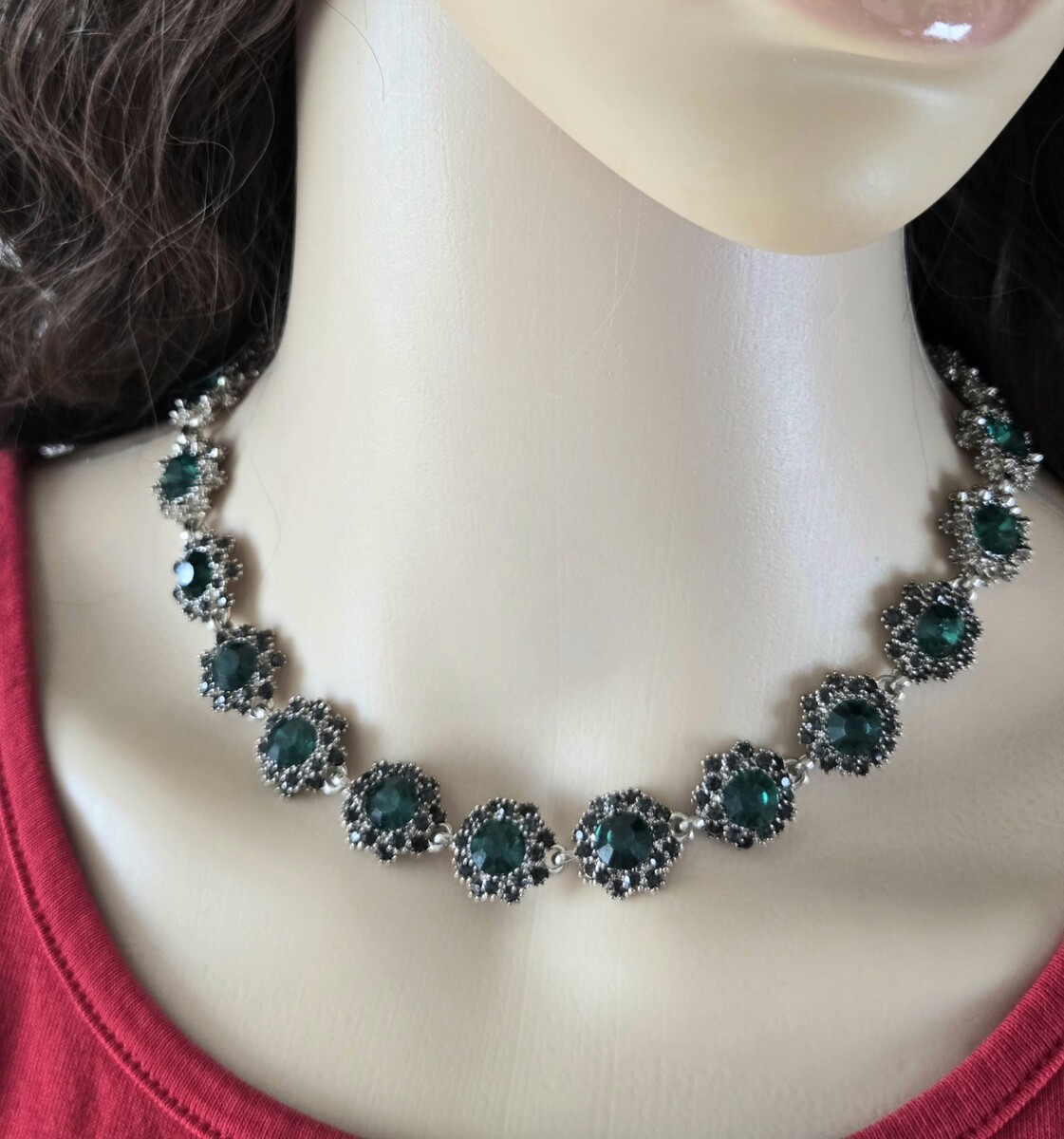 - Emerald Green Rhinestone Choker Necklace | Vintage Statement Jewelry