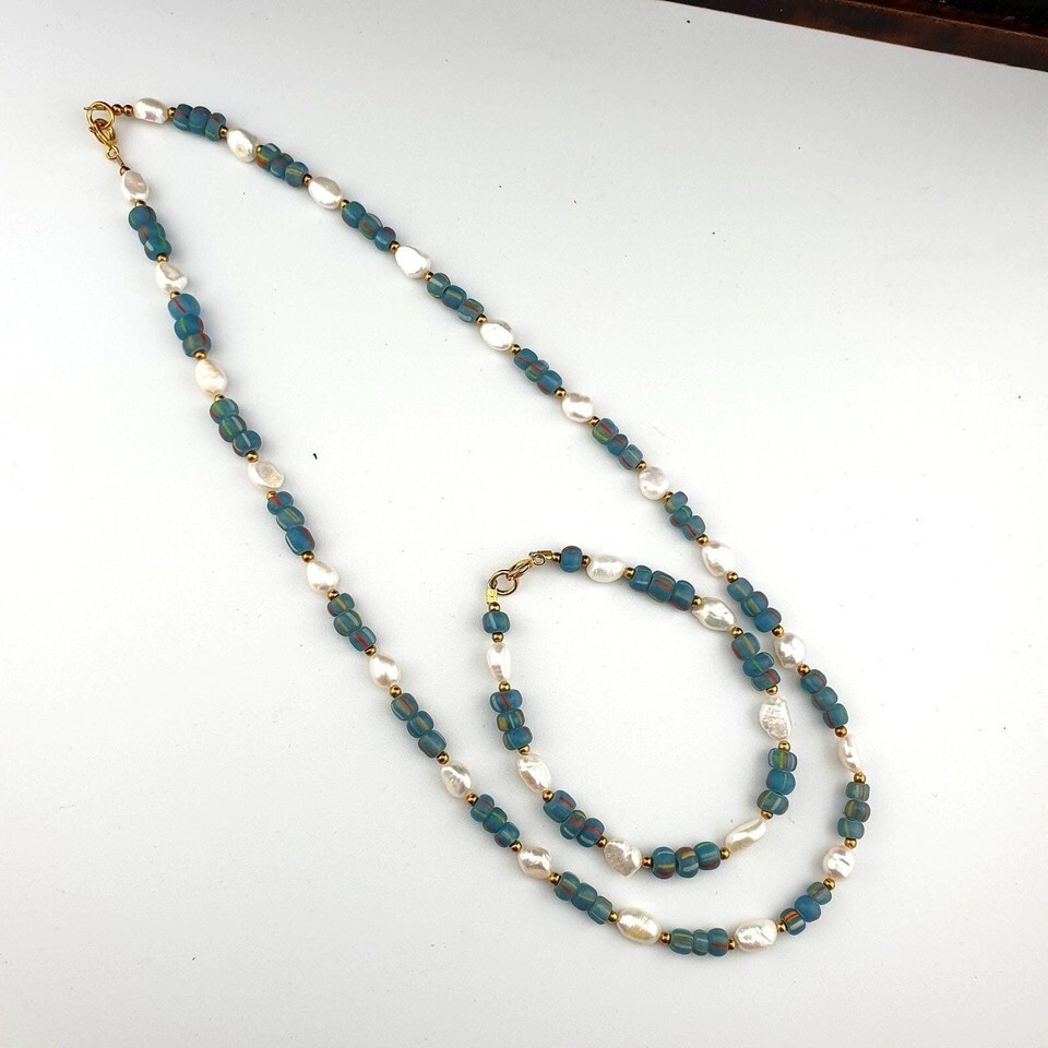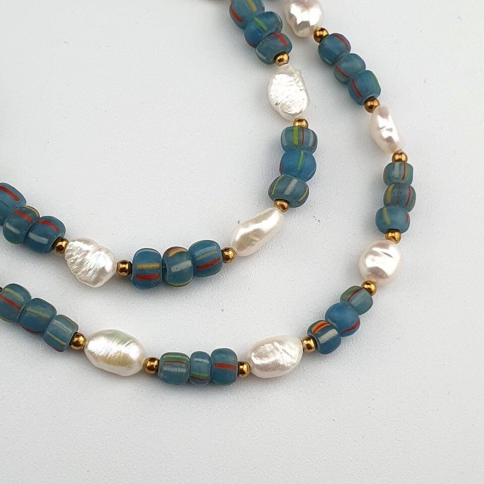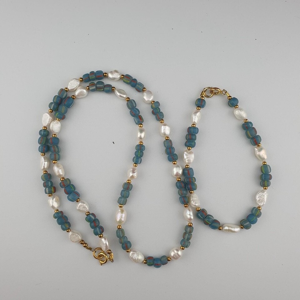 - Ensemble collier et bracelet perles de verre africaines et perles d'eau...
