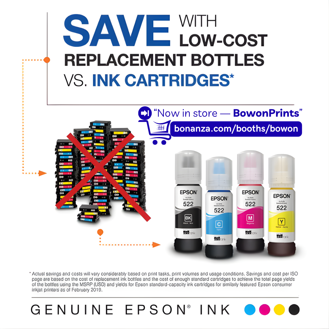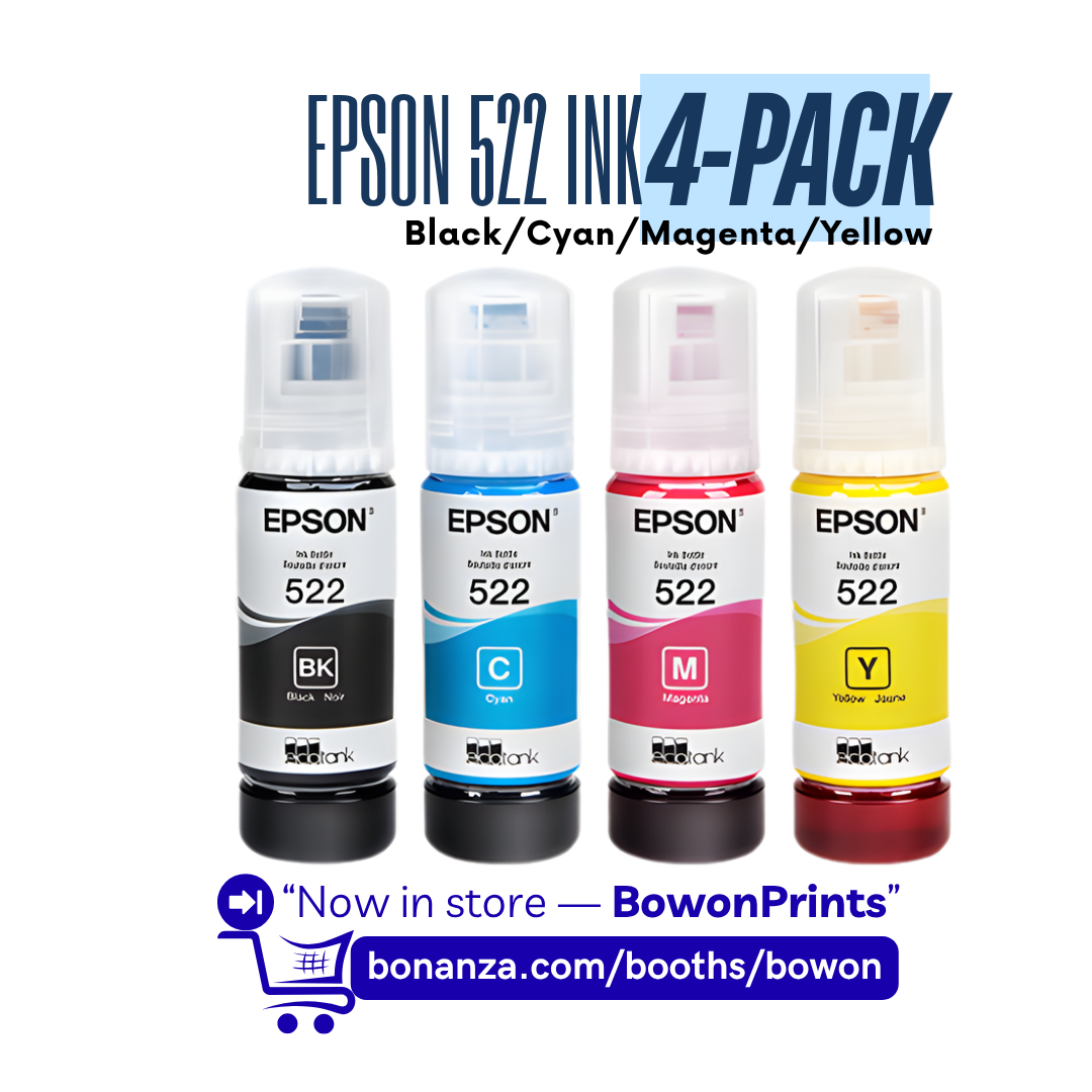- Epson 522 Ultra High-Yield Ink Bottle Refill Set (T522120-BCS)- Black/Cyan/Mage