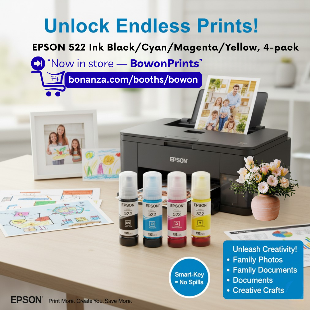 Bring vibrant, long-lasting color to your prints with Epson 522 Ultra High-Yield Ink Bottle Refill Set. Designed for Epson EcoTank printers, these high-capacity ink bottles deliver sharp text and brilliant color prints while reducing the need for frequent refills.