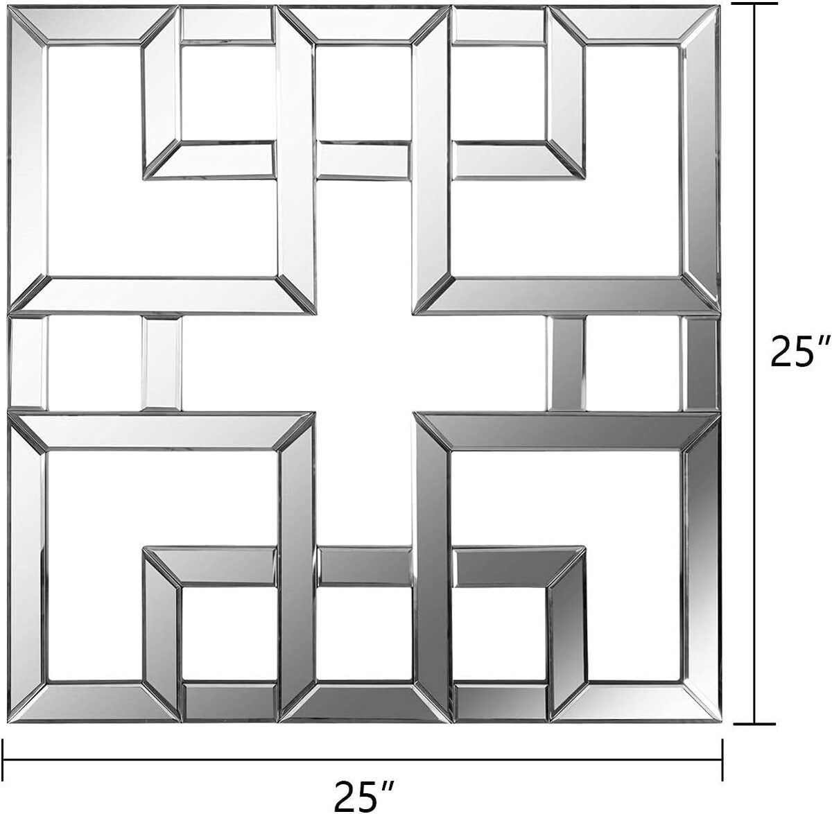 Brand new in the Box! MOTINI Accent Wall Mirror Wall Art Decor Geometric Art Wall Mounted Mirrors for Wall Abstract Artwork Square Mirror for Foyer, Living Room, Entryway, Hallway Home Decor, 25" x 25" FEATURES: This mirror is fabulous near the front door for that last-minute quick peek before leaving or simply as a unique accent to bring depth and reflection to any space, that can help make a space feel larger. Adding a decorative touch to complement your room's aesthetic. Brimming with contemporary style, it showcases an openwork frame made from MDF filled by geometric mirror glass. Measuring 25'' H x 25'' W x 1.14'' D, it's sized to enhance a vignette without overpowering existing decorations. It can be perfect for foyer, entryway, hallway, living room wall decor. Easy care, it can not only be used for mirror, but also as a unique wall art decor. It is easy to clean and easy to hang it with hooks on the back. It is 1.14" Depth, and geometric pattern which is fullfilled by mirror glass, that can be used as a wall art or a mirror on dooy way. Made of float glass through the polishing, precision coating and three-layer back paint can provide super HD imaging, beautiful, natural and no distortion. made of shattered-proof glass, more safe, more reassuring. Even if the mirror is damaged by external force accidentally, the glass will not be spilled out. GREAT ITEM AT A GREAT PRICE!!
