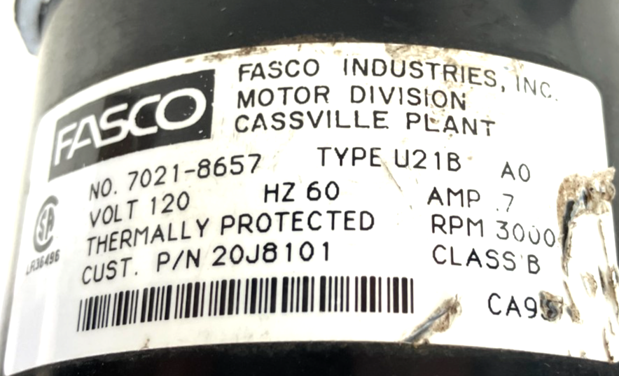 Primary image for FASCO 7021-8657 Draft Inducer Blower Motor 20J8101 120 V used  #M254