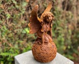 Design: Fairy seated on a textured rose sphere, detailed wings and gentle posture.