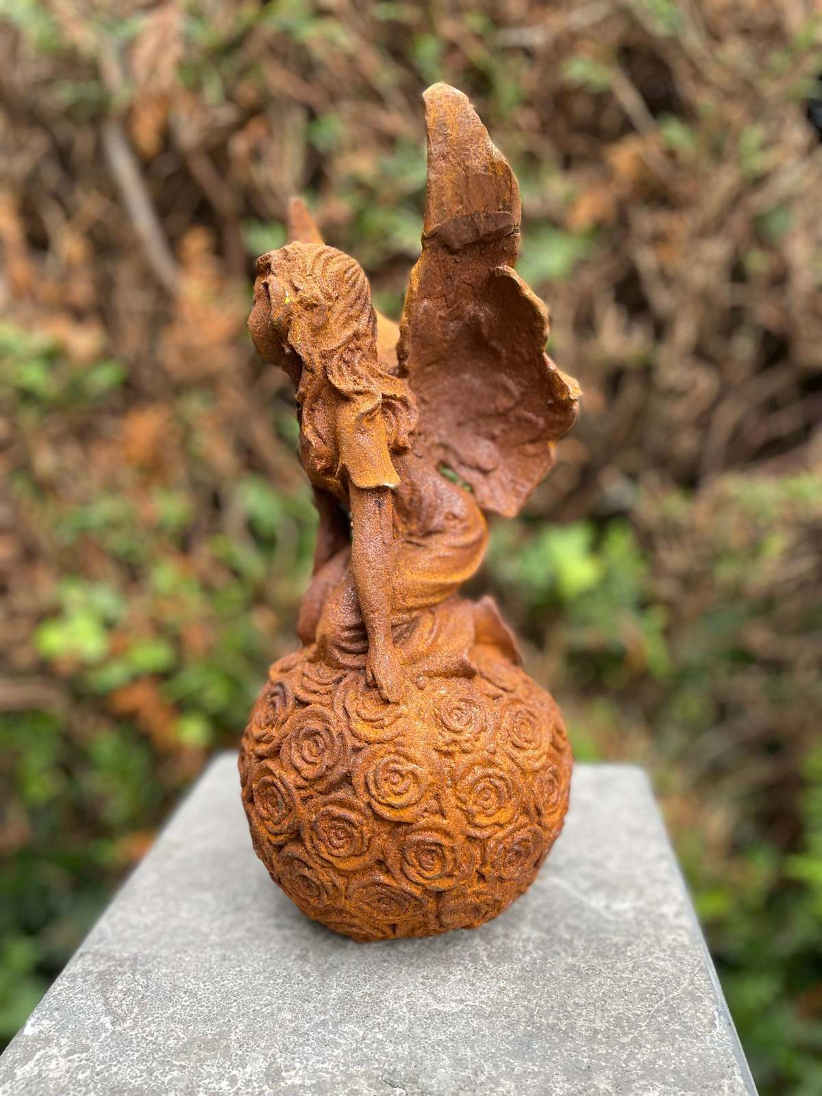 - Fairy on Roses – Iron Sculpture - Charming and Magical 31x13x13cm - 4.3Kg