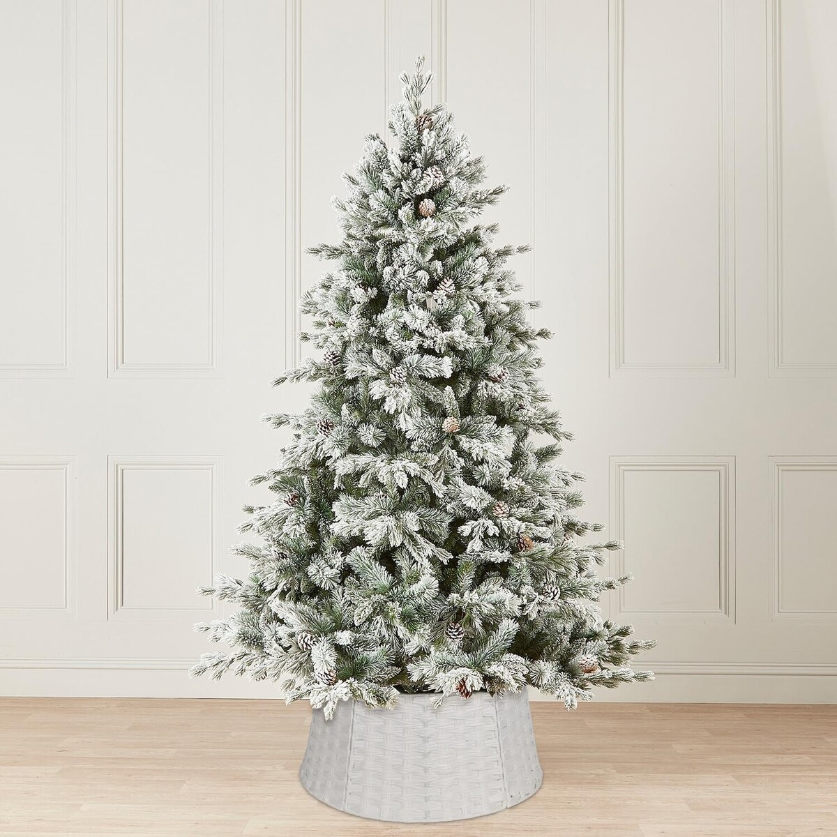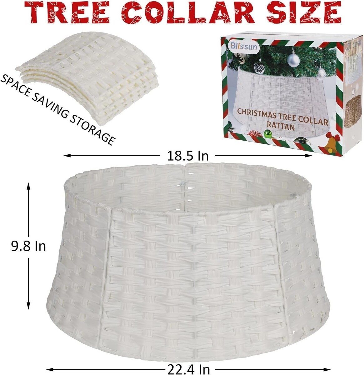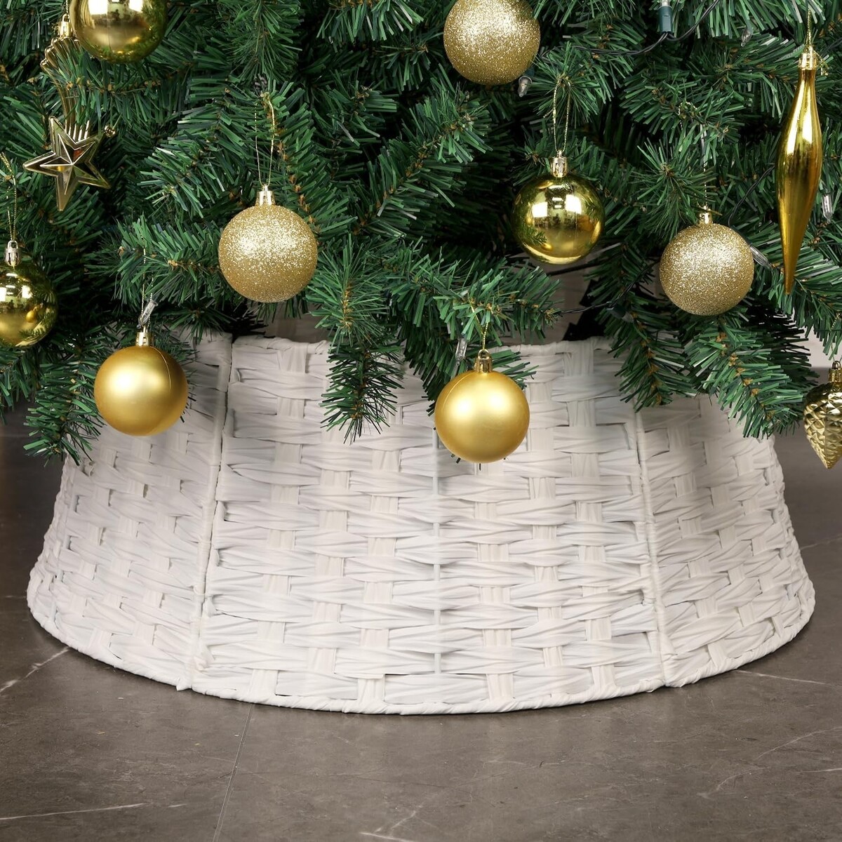 - Farmhouse Style White Plastic Rattan Christmas Tree Collar for Artificial Trees