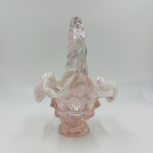 - Fenton Basket Butch Wright Carnival Glass Pink Opalescent Home Decor Handle Art