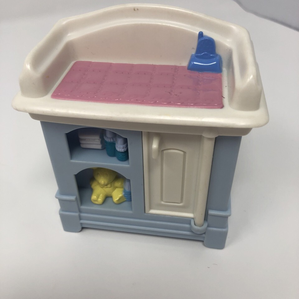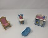 The Fisher Price Loving Family Baby set includes a high chair, rocking chair, bathtub, and changing table/ dresser , perfect for imaginative play with dollhouses. The brand is Fisher-Price, known for creating high-quality and engaging toys for young children. With this set, kids can act out various scenarios of feeding, bathing, and changing a baby, promoting role-playing and storytelling skills. Ideal for preschoolers, this set fosters creativity and allows children to connect with their families in a playful and interactive way.