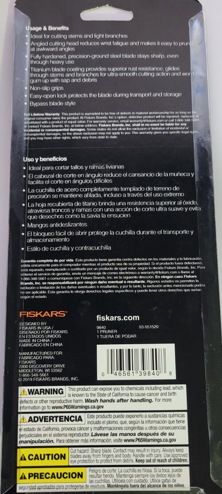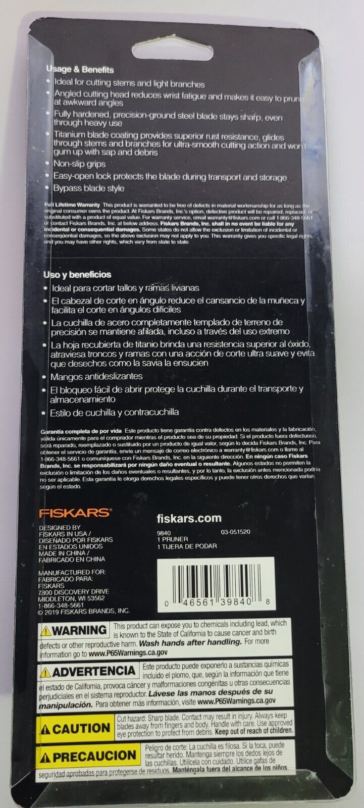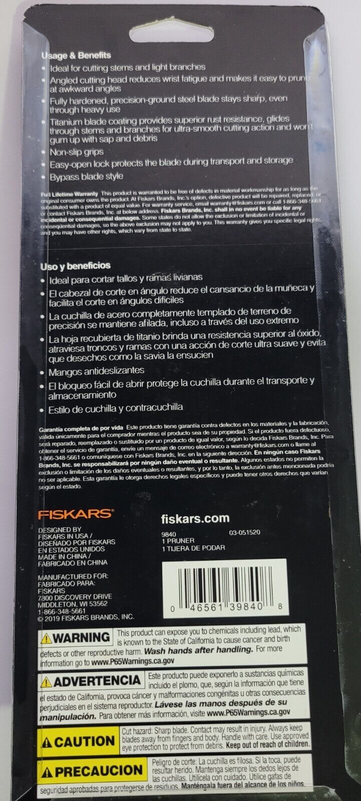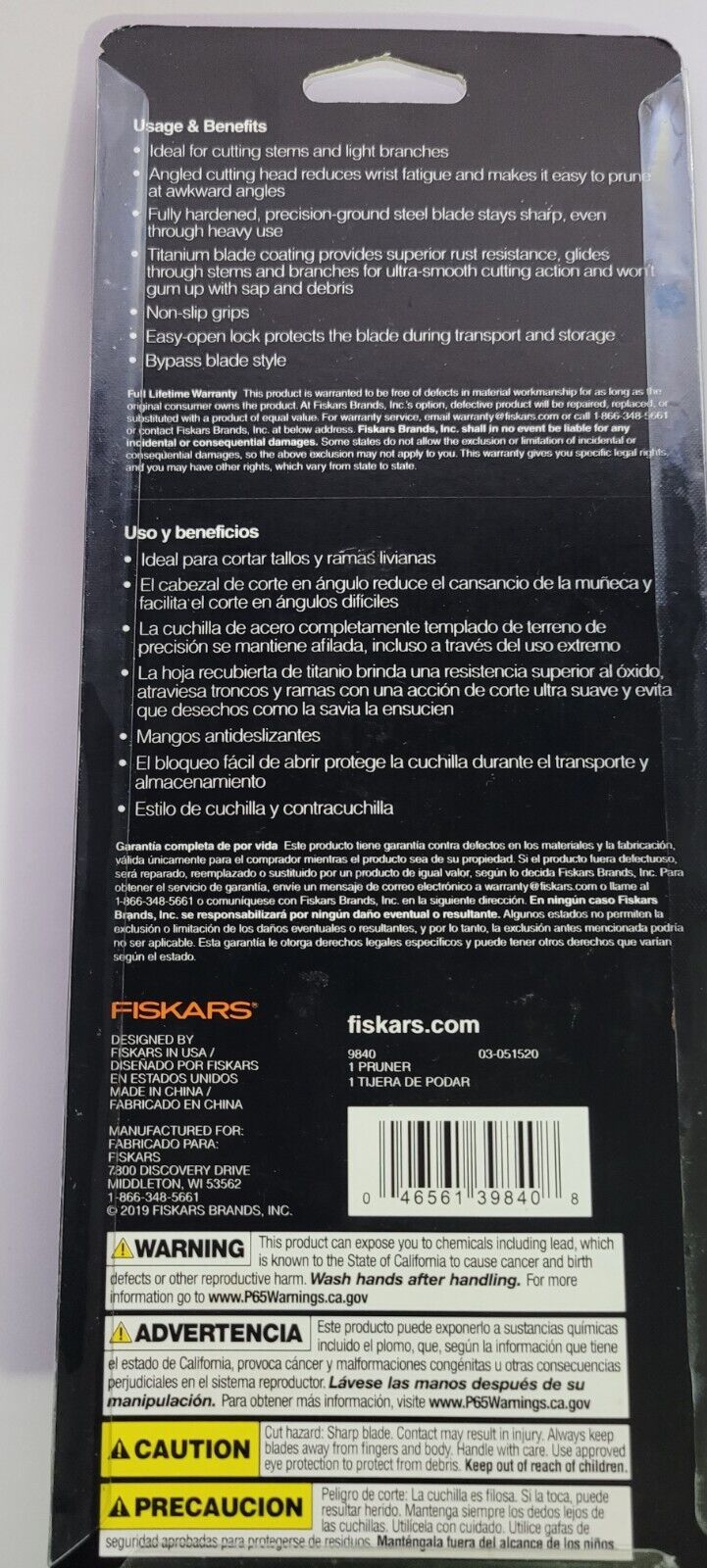 You are Buying a Brand New And Factory Sealed Fiskars Pro 1 in. Cut Capacity Steel High Carbon Blade with SoftGrip Handle Hand Pruning Shears Model # 394951-1002.... PowerArc technology, the Fiskars Pro pruner boasts intelligently curved blades for 20% easier cuts