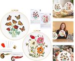 - Flowers & Butterfly Spring Embroidery Starter Kit 8 Inch Hoops Thread Beginner