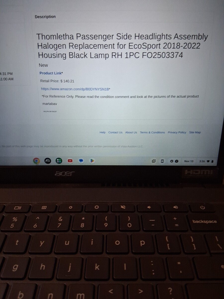 - For 2018-2022 Ford EcoSport Halogen Headlight Headlamp W/Bulb Right Passenger