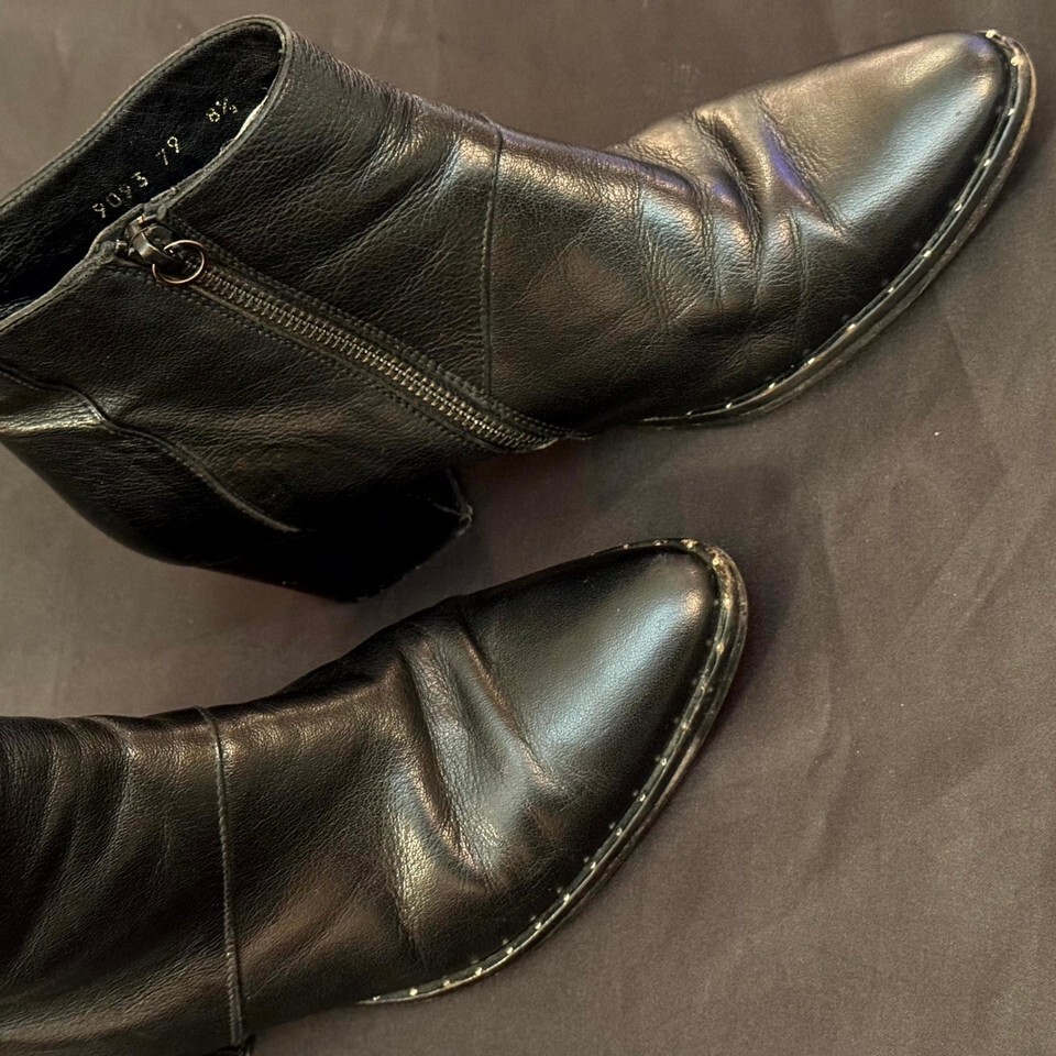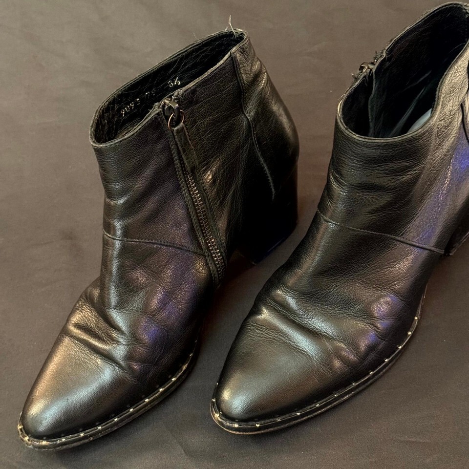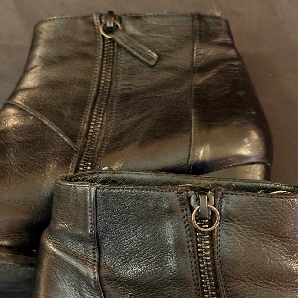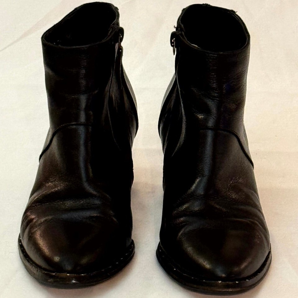 - FREDA SALVADOR Black Leather Ankle Boots Zip Block Heel Size 8.5 Spain