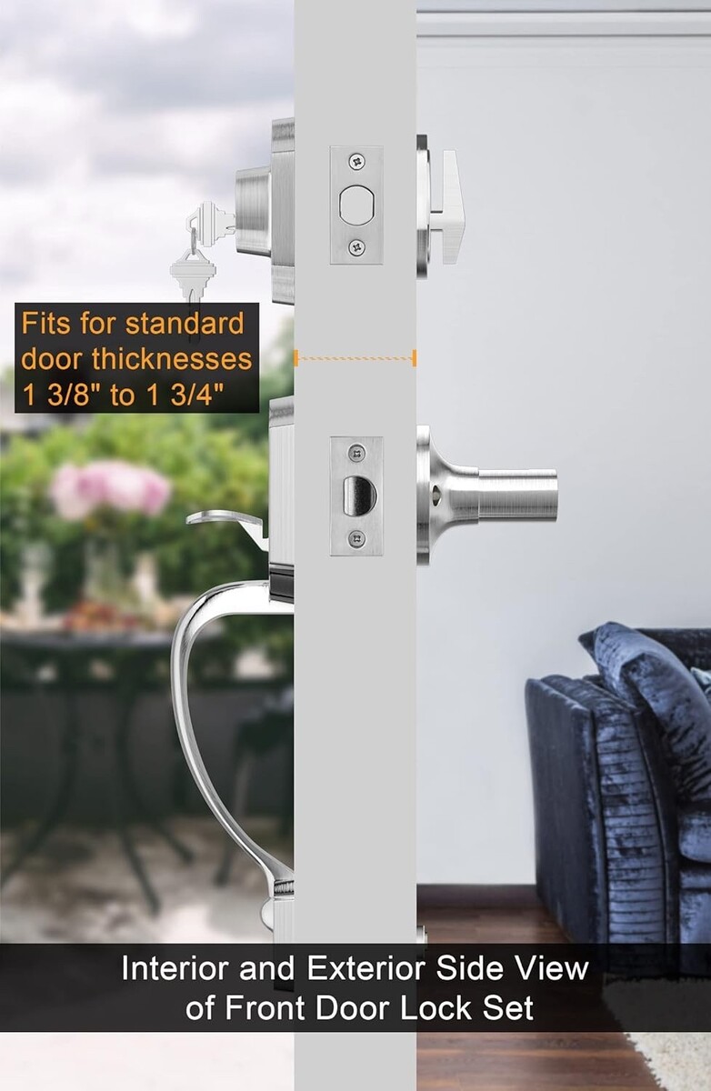- Front Door Handle and Deadbolt Set, Brushed Nickel Front Door Lock Set with R...