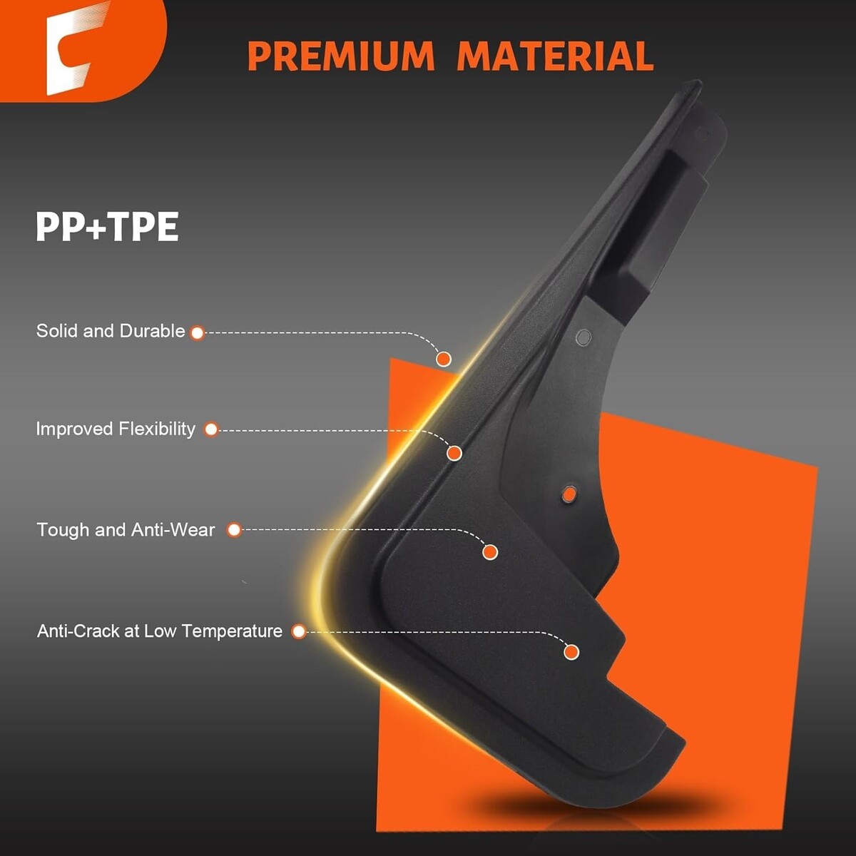 High-Quality PP TPE Material: The mud guards compatible with Ford Maverick are constructed from durable, flexible PP TPE, providing the structural strength needed to maintain the mud flap?s shape without easily rupturing or deforming upon impact.