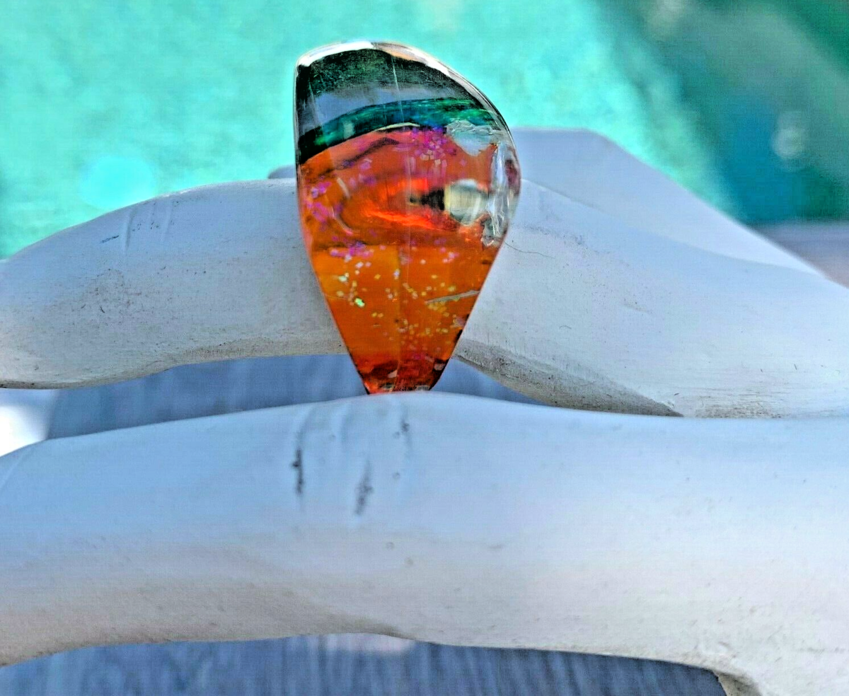 Fun Retro Ring Lucite Metallic Multi-color Size 4 Green /Orange/ Pink 1960s NOS