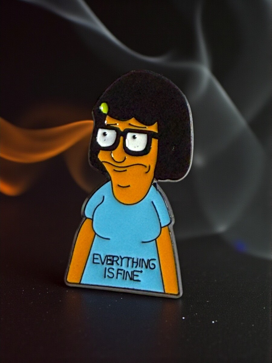 - Funny “Everything Is Fine” Enamel Pin – Sad Girl Meme Pin, Humor Gift, Lapel Bad