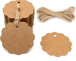 G2PLUS 100PCS Craft Scalloped Paper Gift Tags with Natural Jute Twines, 2.36''