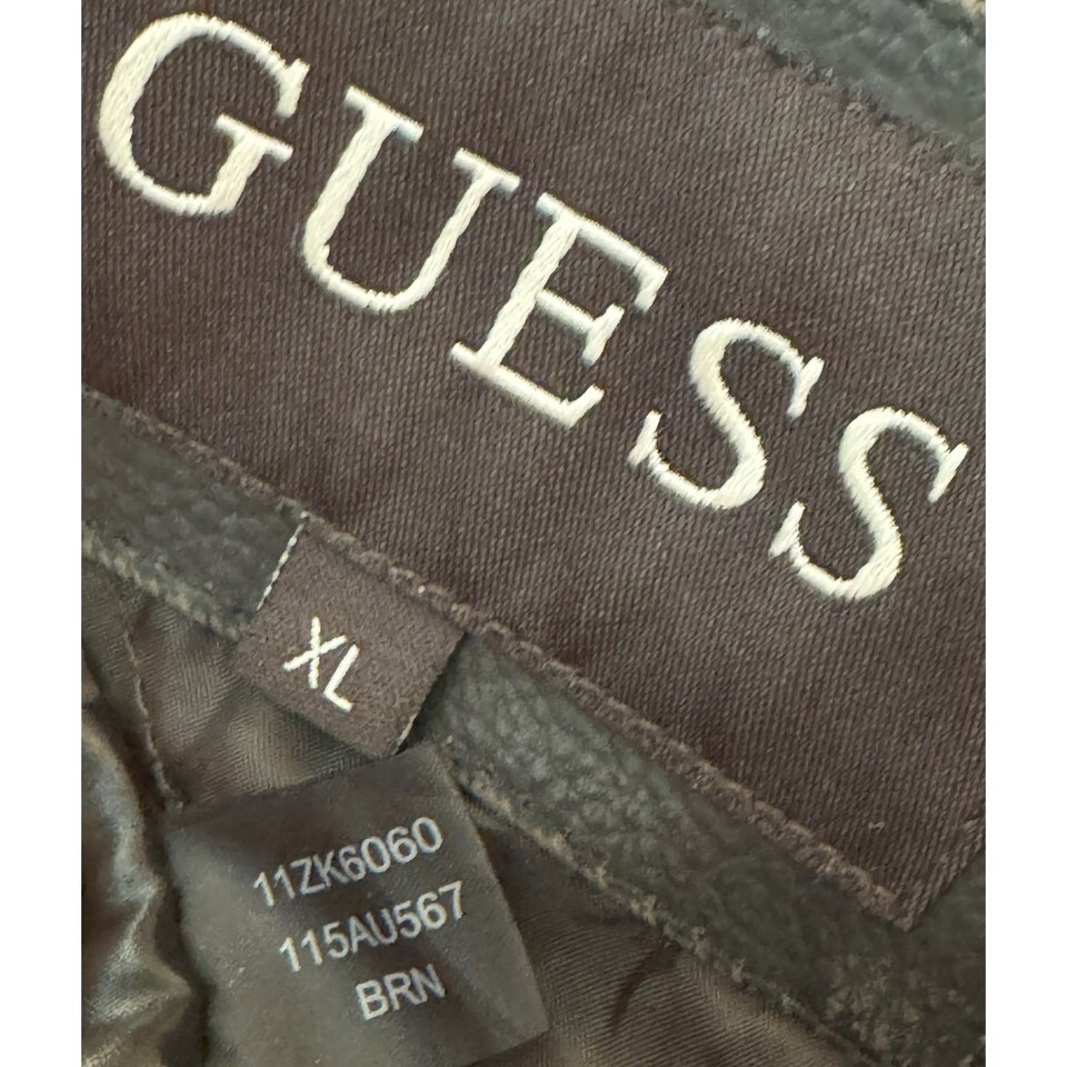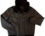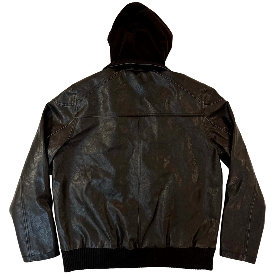 GUESS Men's Faux Leather Bomber/Flight Jacket Brown XL Hooded Zip-Out Insert