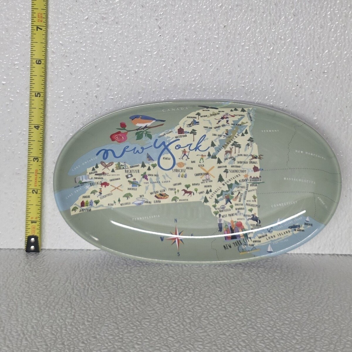 Galleyware New York State Oval Melamine Tidbit Tray Dish 8" x 4.5". Images show actual item that will ship.