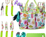 Garden Tool Set,Cute Gardening Gifts for Women,Birthday Gifts for Mom,Heavy Duty Tool Kit with Gloves,Garden Tote,Kneeling Pad,Hand Pruner,Trowel,Hand Rake,Weeder,Fork,Transplanter,Multicolor