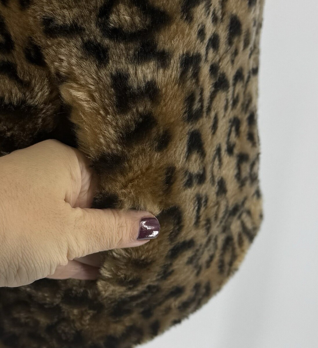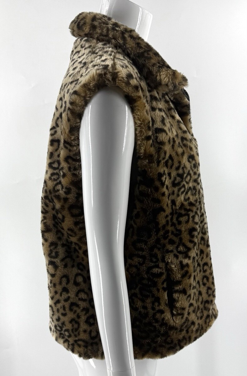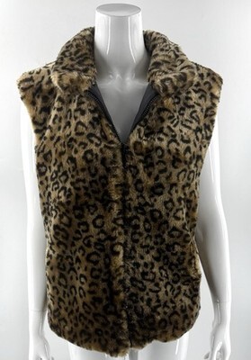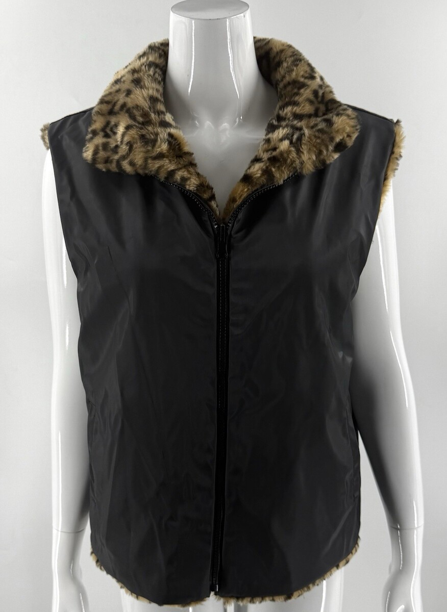 - Giacca Reversible Vest Size Large Brown Black Animal Leopard Print Faux Fur NEW