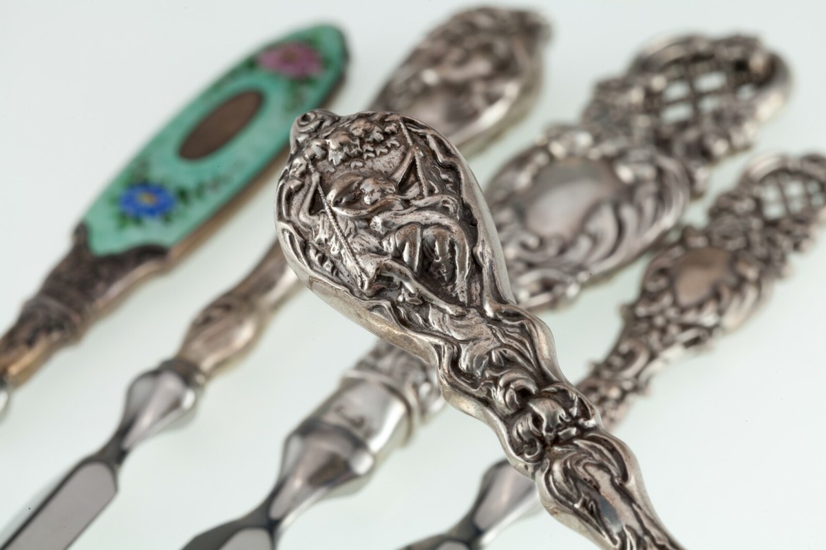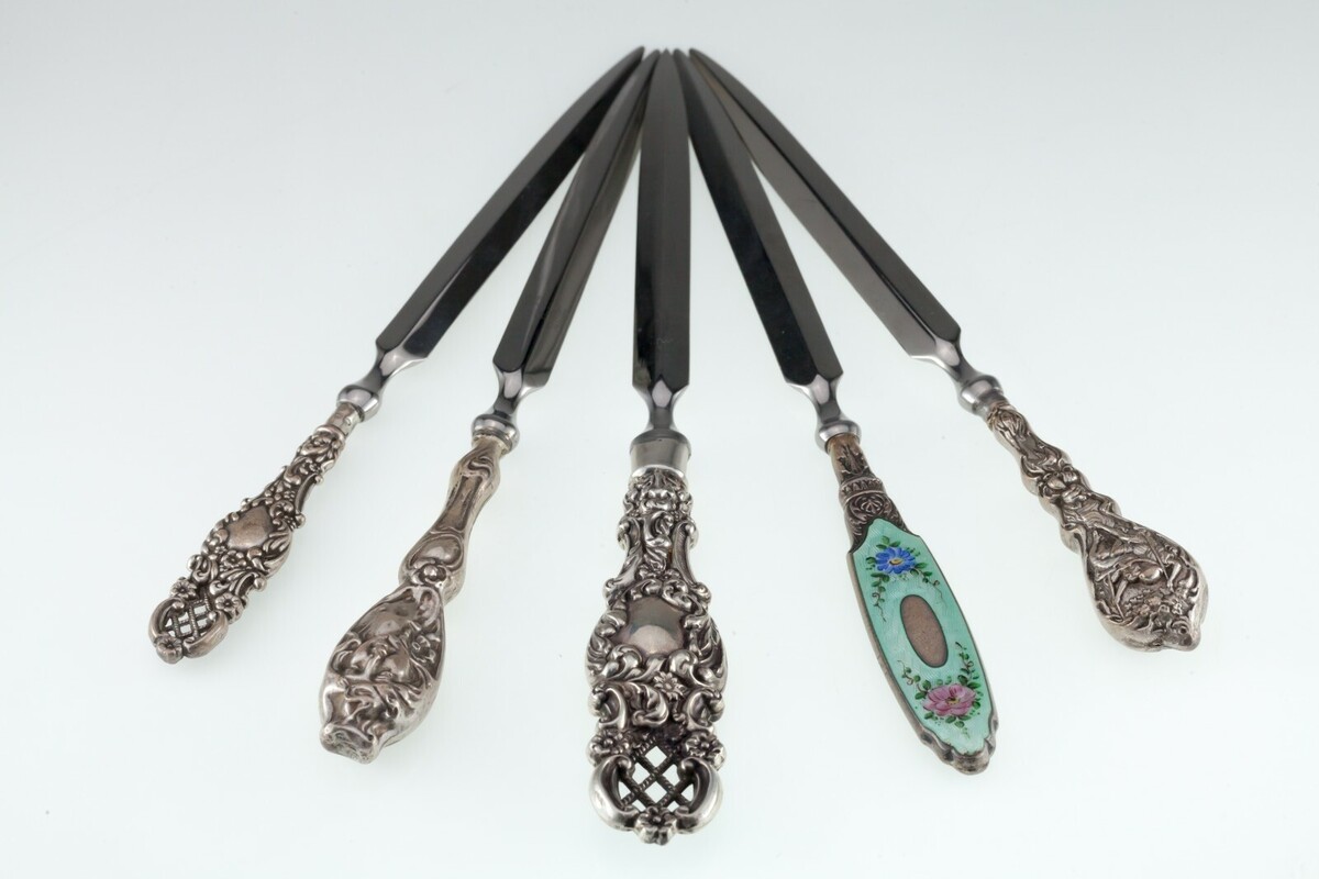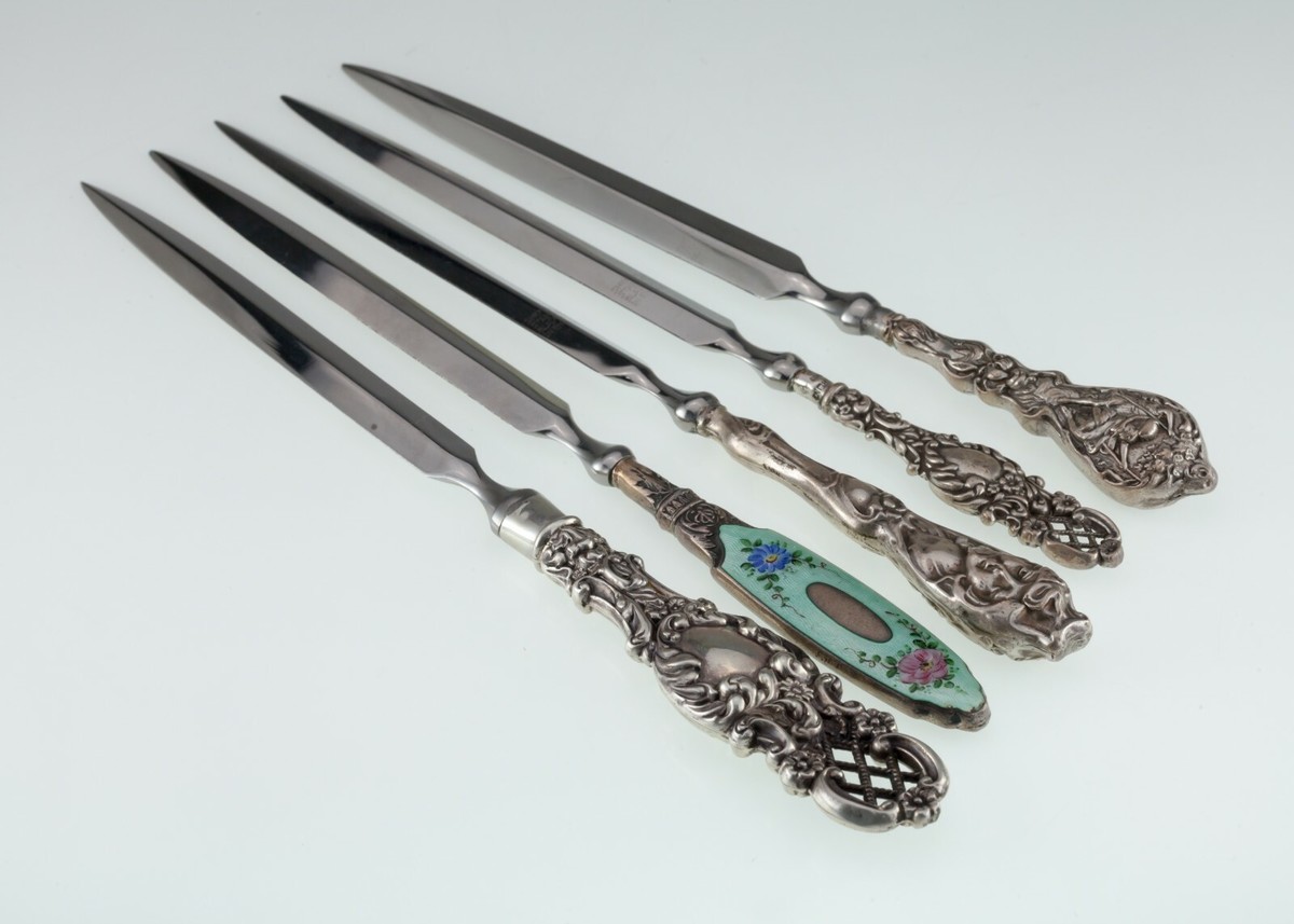 Gorgeous Art Nouveau/Art Deco English Sterling Letter Opener Set of 5