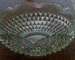 You are bidding on this gently used clear Gorgeous Diamond Pattern Large Size Open Punch Bowl, with ruffle rim. The bowl is in very good condition, with no chips or cracks, and it is a bit dusty and will need to be washed. I am unsure of which pattern in is. It is 4.75" tall, about 3.75" deep, 4.75" in diameter at the base, and 10.75" in diameter at the top rim. This is a beautiful glass bowl, with a lovely pattern, a very useful size for serving, and would be a wonderful decorative item as well.