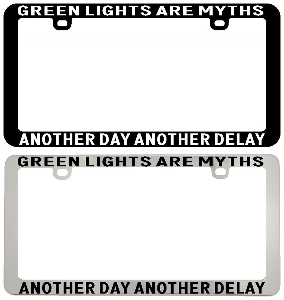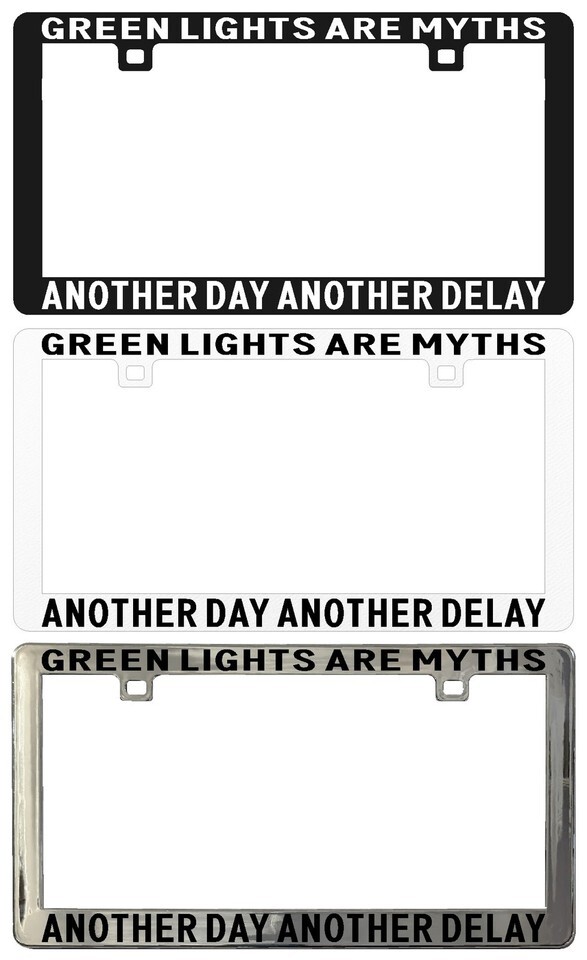 GREEN LIGHTS ARE MYTHS ANOTHER DAY ANOTHER DELAY. License Plate Frame
