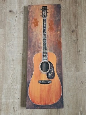 - Guitar Painting Canvas Print Wall Art, Acoustic Design, 12'' x 36'' Vertical Art