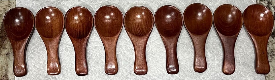 About this item Package Includes: 10PCS mini handmade wooden spoons, 3.25" long and the scoop part's diameter measures 1.45". Each scoop has a capacity of about 5.5ml. Premium Material: Made from natural wood, odorless and splinter-free, 100% safe to apply on food. Durable and reusable. Excellent Craftsmanship: This mini wooden spoons were glazed a protection layer which was applied with the Raw Lacquer Process. That means the varnish on the spoon came from natural resin, eco-friendly and non-toxic. DIY Supplies: The surface of our mini spoon is blank, you can paint or carve on the spoon by your imagination and creativity to make this spoon one-of-a-kind. Portable: This wooden spoon is compact and lightweight, easy to carry and store, perfect for travelling, eating, camping, hiking and other outdoor activities.