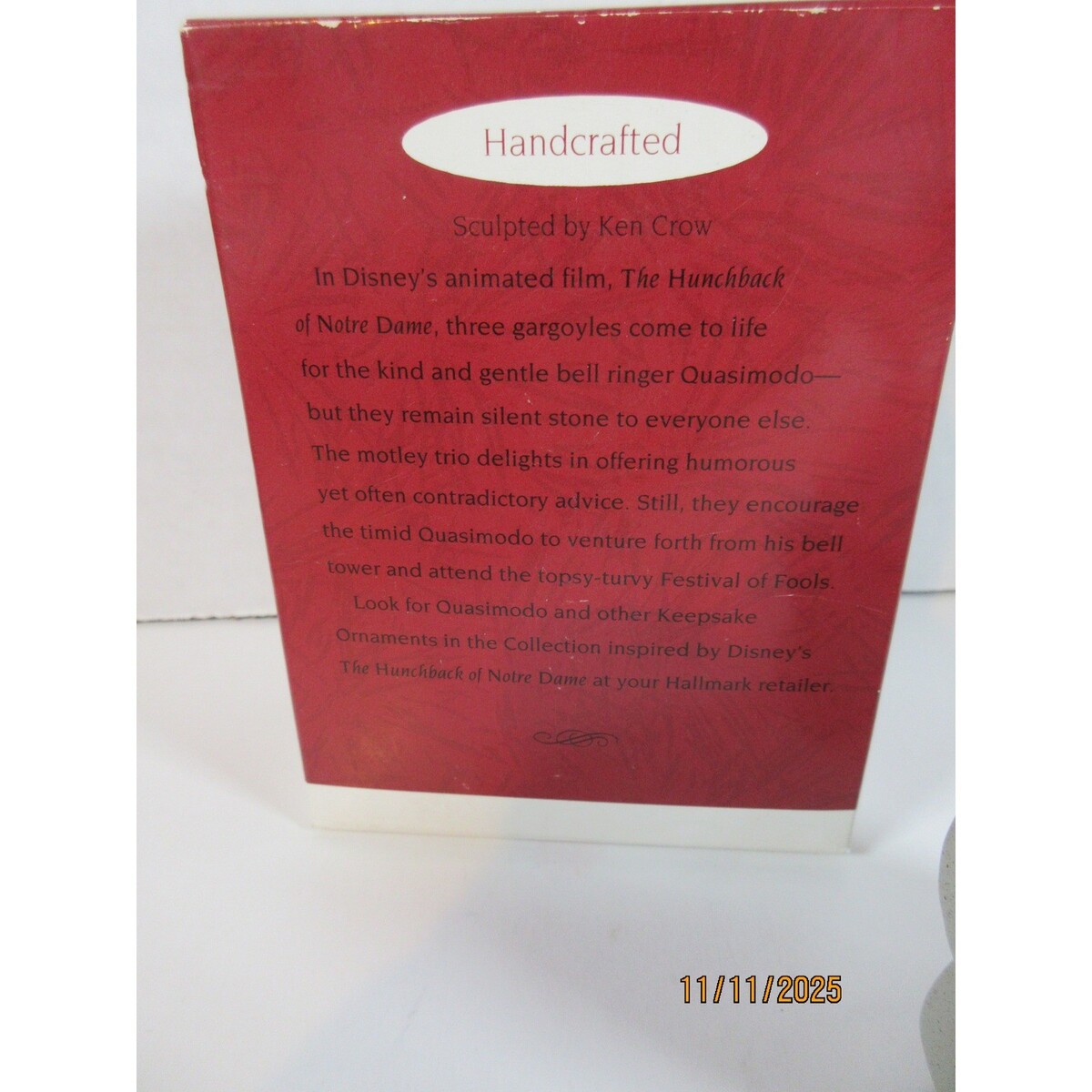 Keywords: Disney, Hunchback of Notre Dame, Gargoyles, Christmas Ornament, Keepsake Ornament, Victor Hugo, Laverne, Holiday Decor, Disney Collectible, Festive, Whimsical, Gift Idea
