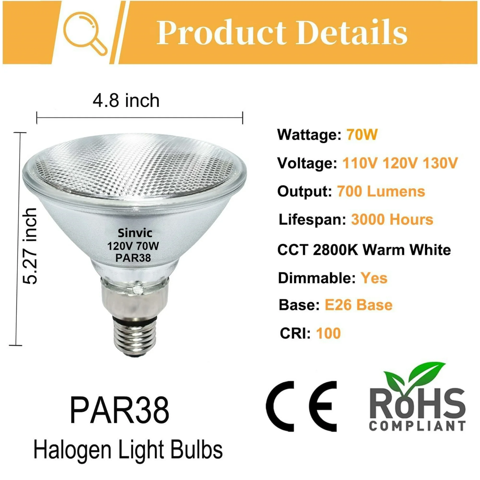Halogn Flood Light 120V 70W, Dimmable PAR38 70W Light Bulbs for Indoor and O...