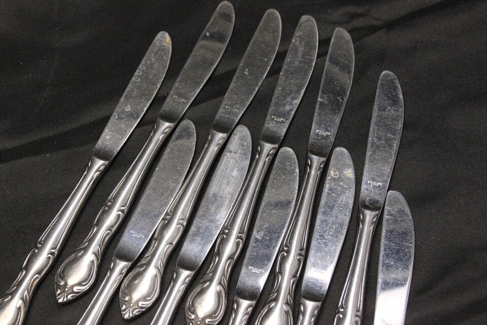 - Hampton Court Dinner Knives Scroll 8-3/4" Stainless Lot of 11