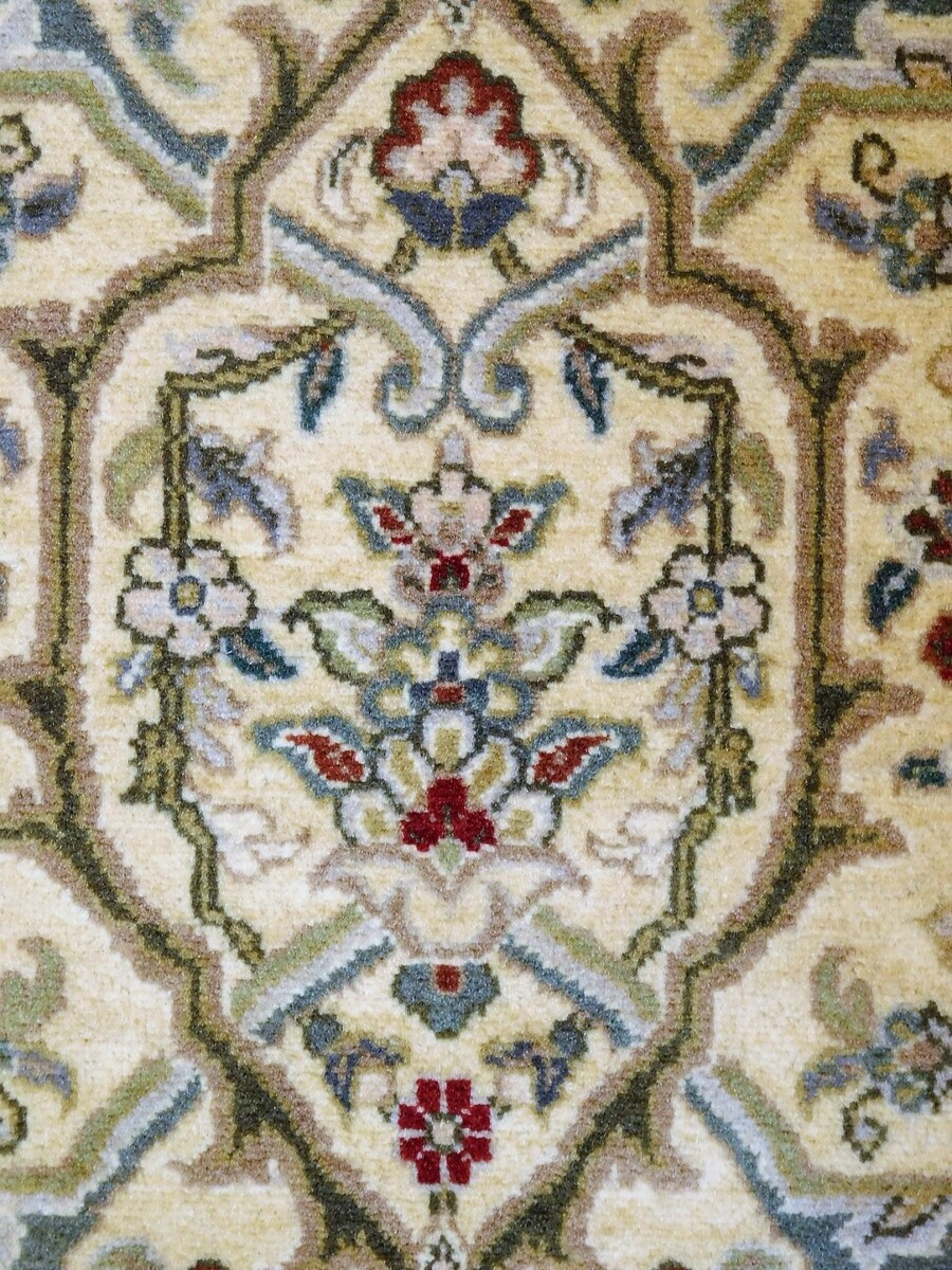 This Hand Knotted Pakistan Rug is a beautiful and authentic piece that showcases traditional Pakistani design. Made with wool and featuring a beige color, the rug is hand-knotted with a pile type that is perfect for any room in your home. With a thickness of 8mm and dimensions of 17'0'' in length and 12'0'' in width, this rug is a unique addition to your space that requires professional cleaning for maintenance. Handmade with care and attention to detail, this original rug is a timeless and elegant piece that will add character to your decor.