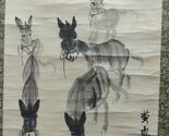 Hand Painted Watercolor 34"x18" Painting 5 Four Donkeys possibly Huang Zhou