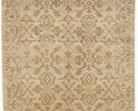 This hand-knotted European style Indian rug features an all-over floral pattern in beige color, made of 100% wool with a medium pile height. The rectangular rug measures 4'1'' x 5'10'' and is designed in a French style, adding a touch of elegance to any room. Hand-knotted with intricate weaving technique, this original piece is ideal for professional cleaning. Perfect for adding a touch of French culture to your space, this handmade rug is a unique and stylish addition to your home decor.
