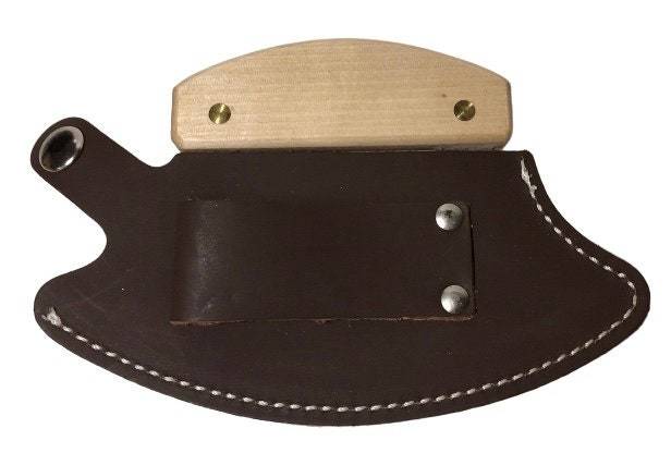- Handmade Birch Wood Handle Ulu Knife Alaska Puffins - Unique Natural Dark Leath