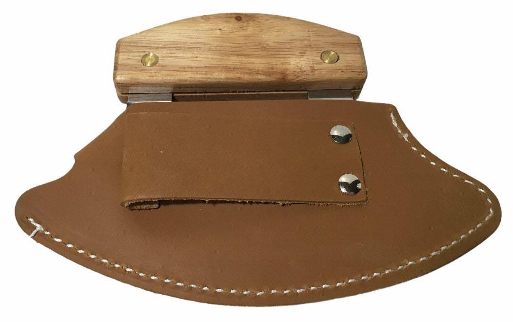 Handmade Birch Wood Handle Ulu Knife - Unique Natural Design Leather Sheath - A