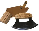 - Handmade Birch Wood Handle Ulu Knife - Unique Natural Design Leather Sheath - A