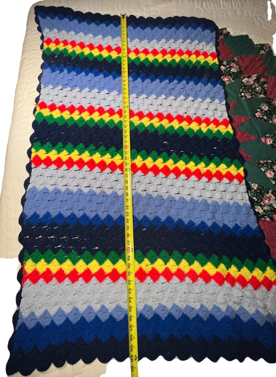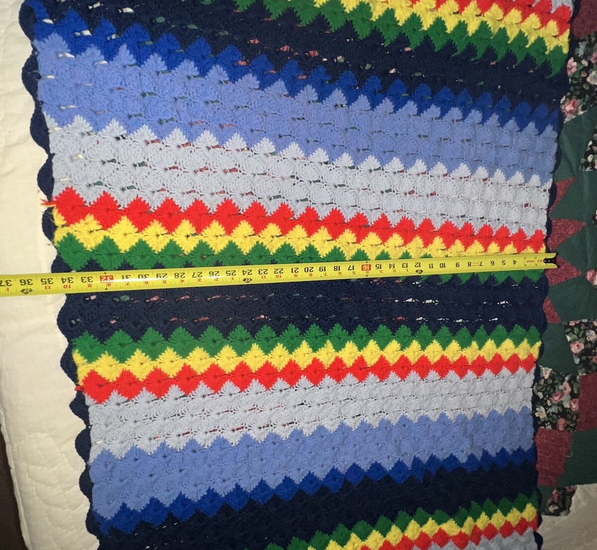 Handmade Crochet Afghan Thrown Blanket Approx Size 60?x35? Multicolor. Condition is Pre-owned. Shipped with USPS Ground Advantage.