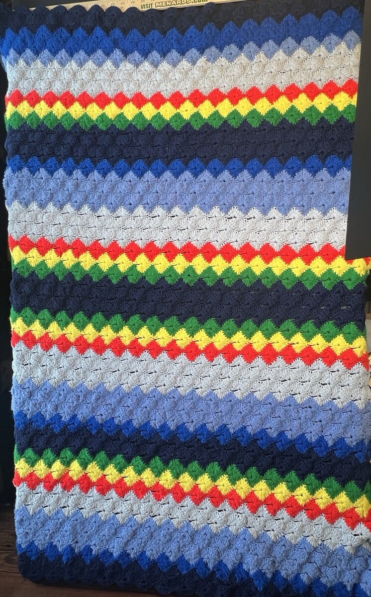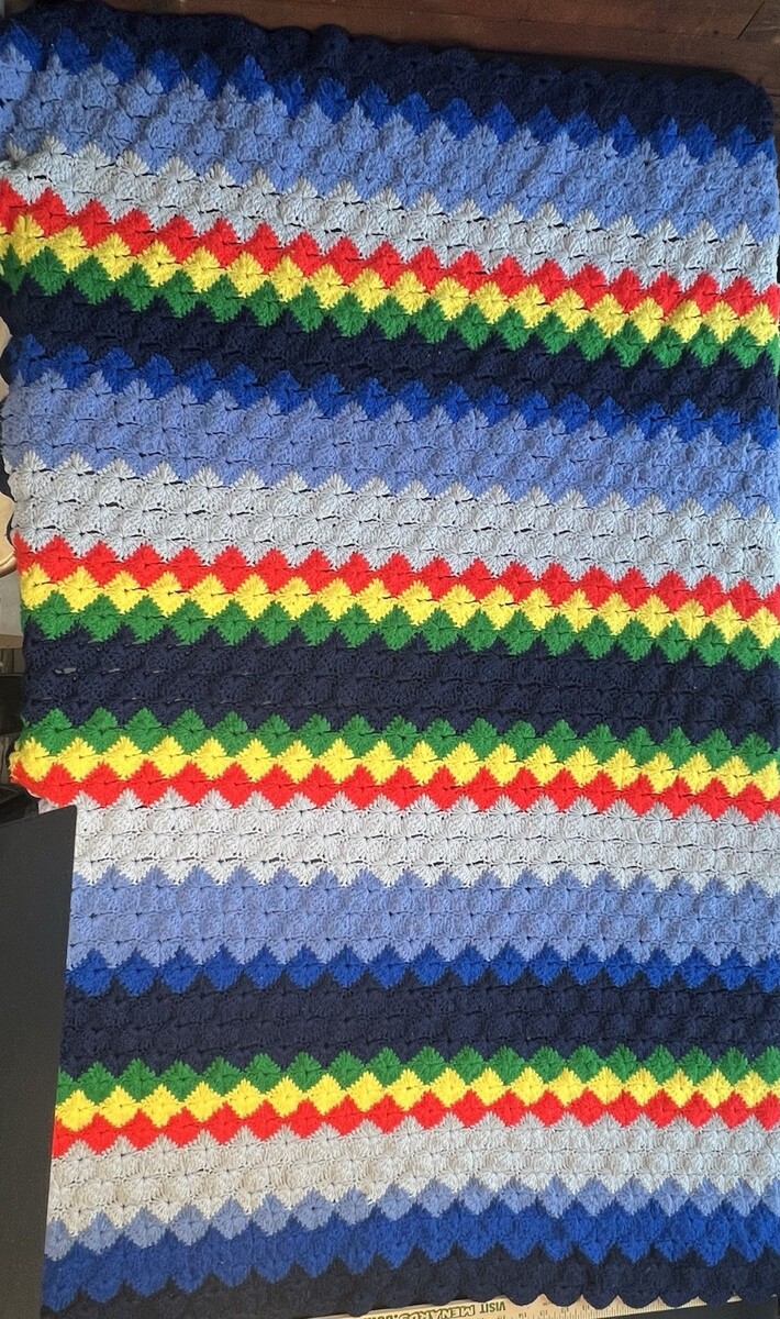 Handmade Crochet Afghan Thrown Blanket Approx Size 60”x35” Multicolor