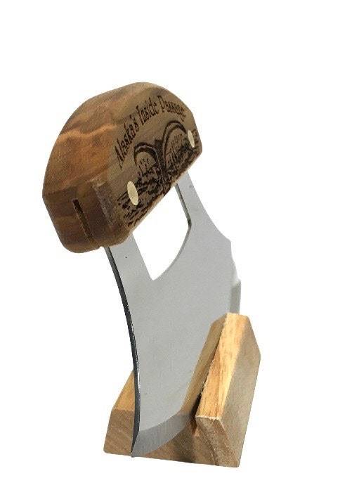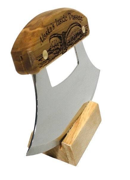 The blade on the Ulu Knife measures 6" stainless steel