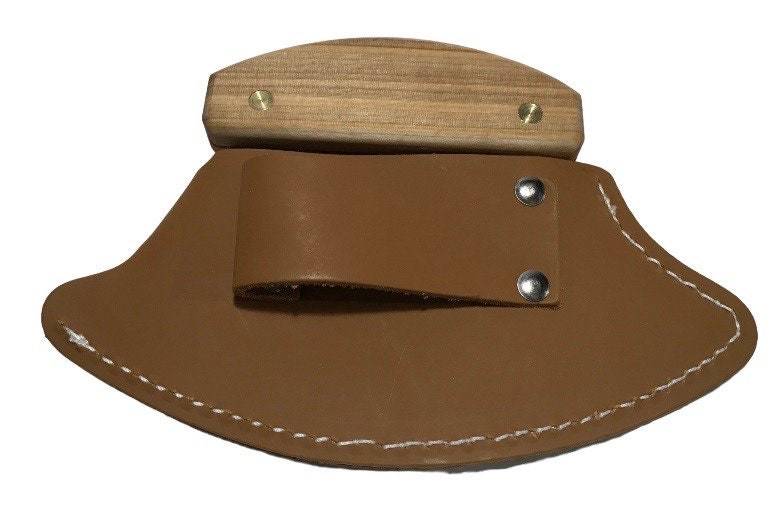 - Handmade Leather Sheath Ulu Factory Birch Wood Handle Knife -Inside Passage Wha