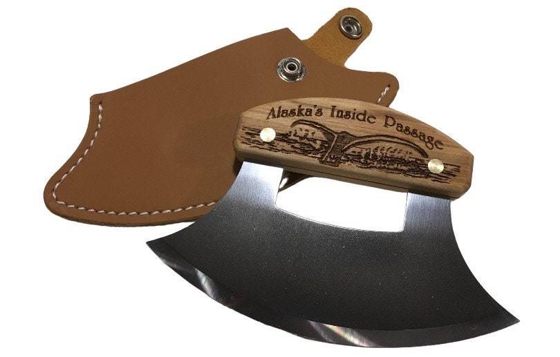 Handmade Leather Sheath Ulu Factory Birch Wood Handle Knife -Inside Passage Wha