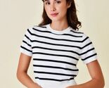 - Happily Grey Sz L Striped White Black Crop Top Tee Shirt Stretch Pullover Blouse